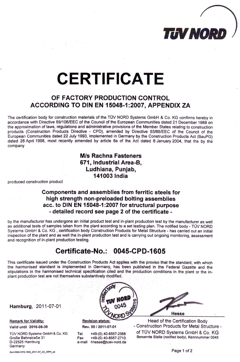Fasteners & CE Approved Fasteners As Per